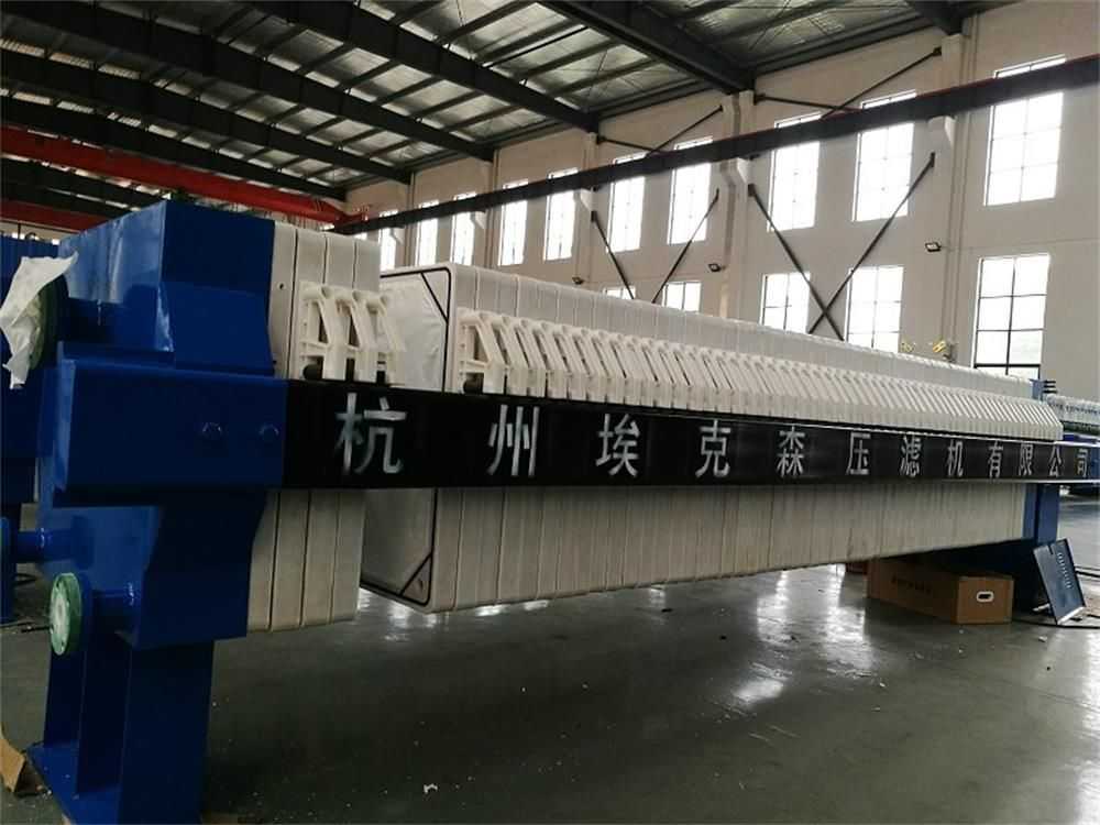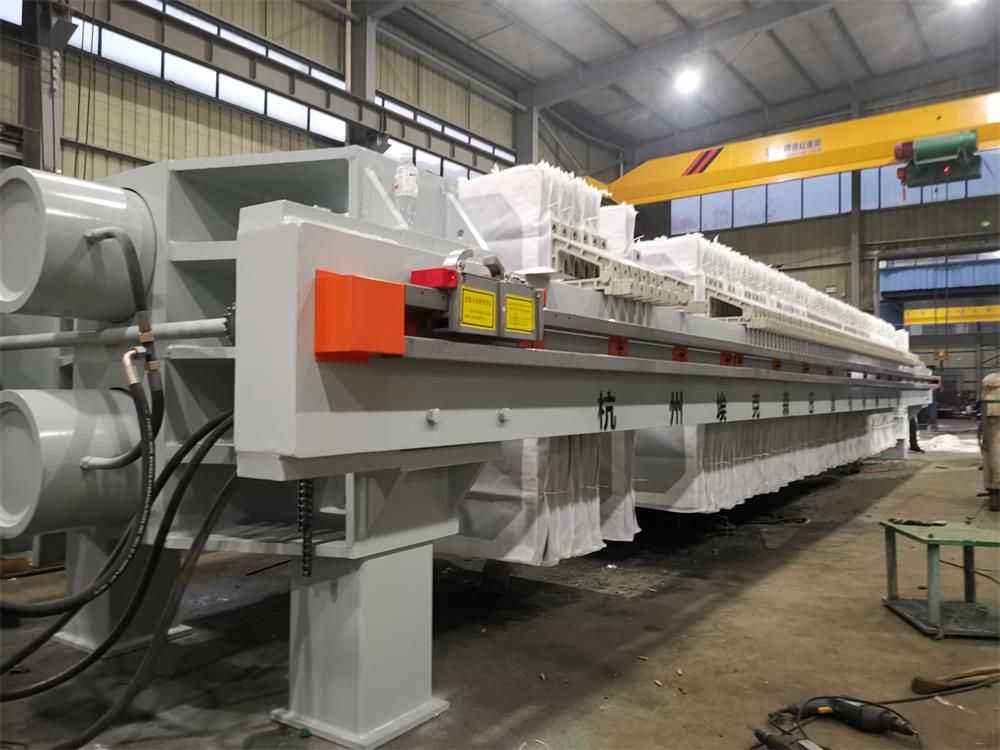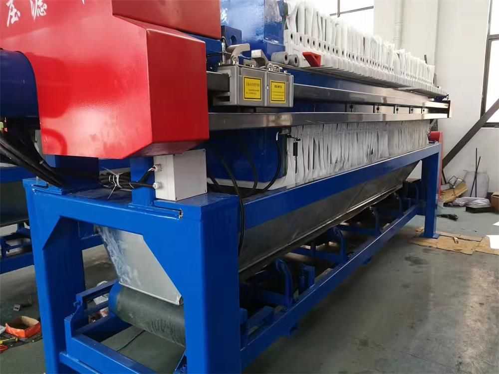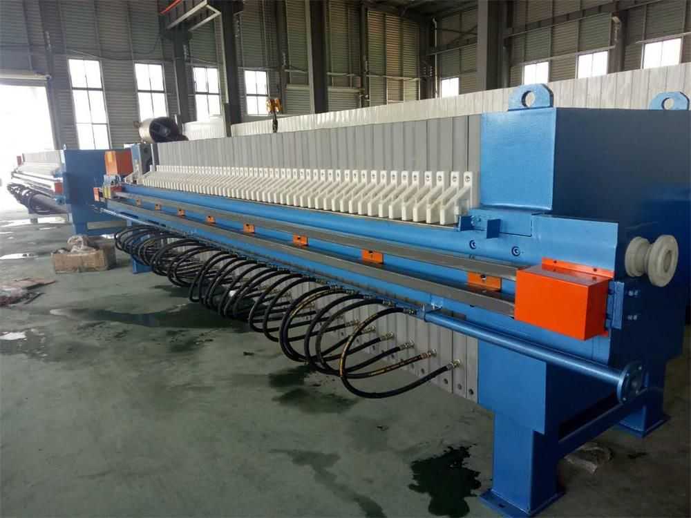 隔膜壓濾機和常規(guī)箱式壓濾機的主要區別在于,在濾板的兩側都增加了兩個彈性膜(復合橡膠膜是一個整體式膜。在操作期間,當進料完成時,將高壓流體介質注入膜中,并使整個膜膨脹以過濾濾餅,以進一步使濾餅脫水,這是壓力過濾。在隔膜壓濾機運行期間,液壓系統使用液壓油作為壓力載體來傳遞內部壓力。